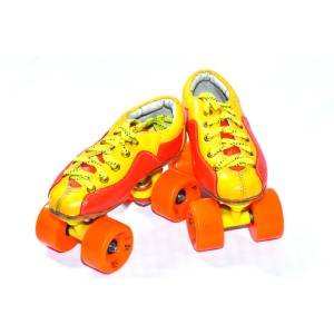Professional Racing Quad Speed Skating Shoes made with premium multicolour leather, a super-stiff VMASTER Nylon 66 frame, quality bearings, and 65mm HR PU wheels for smooth speed and stable performance.